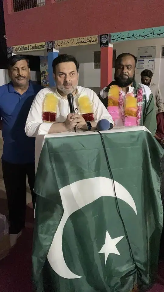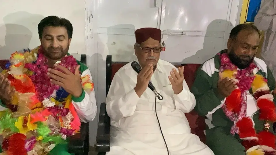 قاضی عدنان فرید سابق رکن پنجاب اسمبلی پاکستان کراٹے ٹیم کے منتخب کوچ شوکتِ علی گھلو کے اعزاز میں منعقدہ تقریب سے خطاب کرتے ہوئے