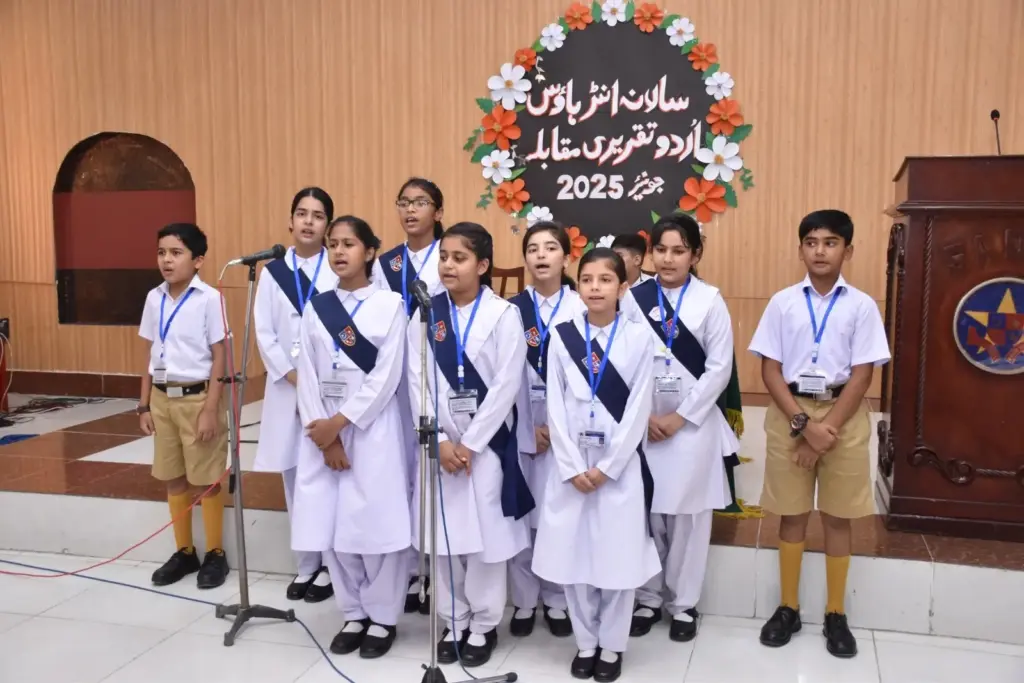 جونئیر سکول کے طلبہ و طالبات کے درمیان سالانہ انٹر ہاؤس اردوتقریری مقابلہ 2025 منعقد ہوا ۔ اس تقریب کی صدارت علی سعد نے کی۔ جب کہ تقریب کی نظامت کے فرائض حاجرہ عارف نے انجام دیے ۔ منصفین کے فیصلے کے مطابق فیرل ہاؤس کی مہک فاطمہ اوررابعہ ہاؤس کی عنایہ فاطمہ نے پہلی پوزیشن حاصل کی۔ جبکہ خالد ہاؤس کے فضل نواز نے دوسری پوزیشن حاصل کی۔ مریم ہاؤس کی فاطمۃ الزہرا تیسری پوزیشن کی حقدار قرار پائیں۔ اقامتی درجہ بندی میں فیرل ہاؤس اول انعام کا حقدار قرار پایا۔ جبکہ خالد ہاؤس نے دوسری پوزیشن حاصل کی۔