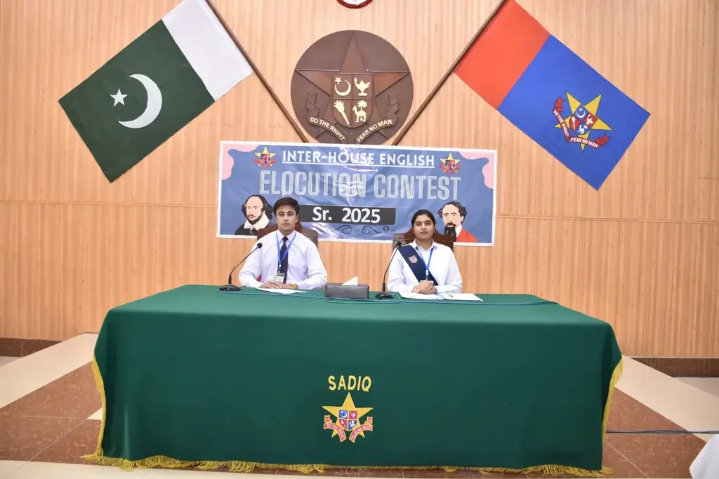بہاول پور ( پریس ریلیز ) صادق پبلک سکول بہاول پور میں ہم نصابی سرگرمیاں, صادق پبلک سکول بہاول پور میں غیرنصابی سرگرمیوں کے حوالے سے درج ذیل تقریبات منعقد ہوئیں جن میں سینئر سکول انٹر ہاؤس انگریزی حُسنِ ادائیگی ، گرلز سیکشن میں محفل میلاد اور جونئیر سکول میں انٹر ہاؤس اردو تقریری مقابلہ شامل ہیں۔ سینئر سیکشن کے طلبہ و طالبات کے درمیان انٹر ہاؤس انگریزی مقابلہ حُسنِ ادائیگی 2025 میں صدارت عمر فاروق نے کی جب کہ نظامت کے فرائض زِروہ فاطمہ نے انجام دیے۔